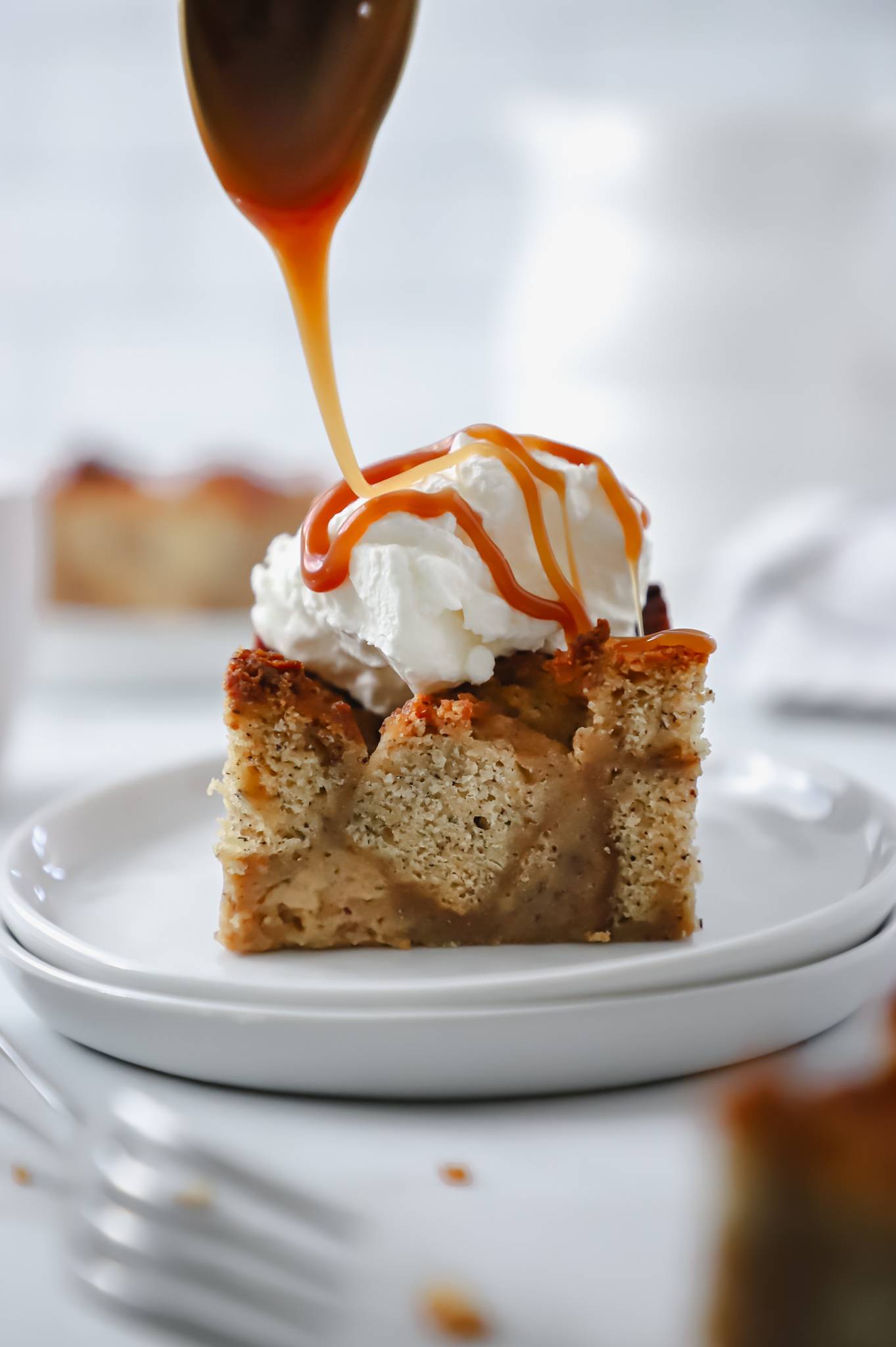 Get two amazing desserts for the price of one with this butterscotch banana bread pudding recipe! This twist on a classic uses banana bread for its bread base and then itβs soaked in a butterscotch creme anglaise before being baked to custardy perfection. Top it off with rum Chantilly cream and a drizzle of butterscotch, and youβre ready to cozy up in dessert heaven.